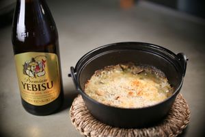 金柑の甘露煮を冷凍して丸ごと入れることにより、冷たさを持続しながらも最初は「エビスニューオリジン」本来の風味を楽しんでもらい、甘露煮が少しずつ溶けてくることでほのかな甘みを。マドラーで潰すことにより金柑自体の風味を楽しんでいただき、味の変化を楽しんでもらえればと思い考案しました。駅から程近い立地でありながら落ち着いた雰囲気で、ひとりででも飲みに行けるような場所を提供出来たらと思っています。
