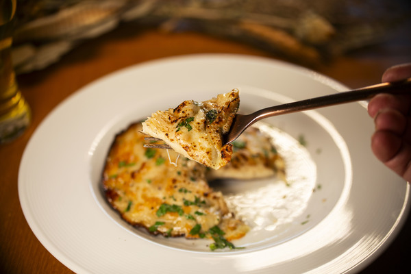 とろけるグラタンのコクを重ねて、奥行きのある味わいに仕上げています。
