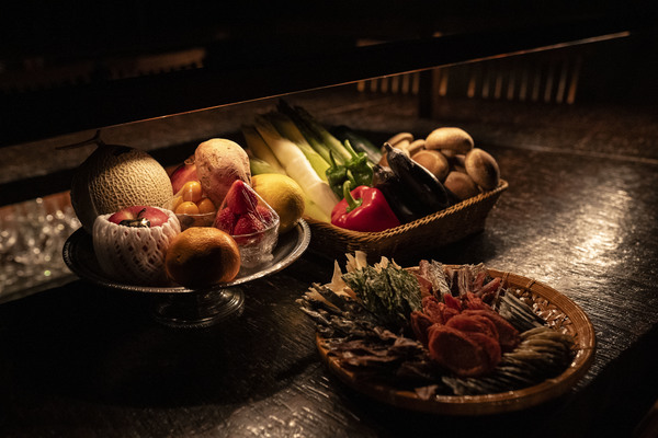 炉で炙った干物や旬野菜の炭火焼をつまみながら、大切な方とゆっくり流れる寛ぎの時間をお楽しみください。
