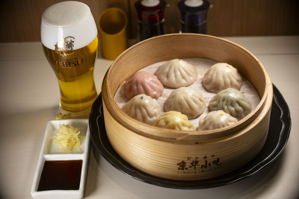 湯気立つ薄皮を破れば、豚と鶏の旨みが凝縮したスープがじゅわっ。ジンホア自慢の小籠包8種に、「ヱビス澄深し」の爽やかなホップの香りとモルトの甘みの余韻が寄り添い、脂をすっと流して次の一個へ。止まらない最強ペアリング。
