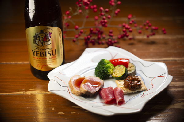 ヱビスビールが進む前菜三種盛り、お楽しみください