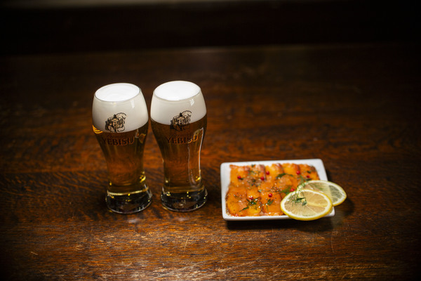 昨年の「ビアエキスペリエンス部門」2位のEPILOGUEさんで飲むドラフトビールは恵比寿でも最高水準のクオリティのビールだ。そんなEPILOGUEで飲むビールとこの至高の素材を掛け合わせたサーモンの生ハムは最高。しかもヱビス澄深しとヱビスの飲み比べができるセットです。