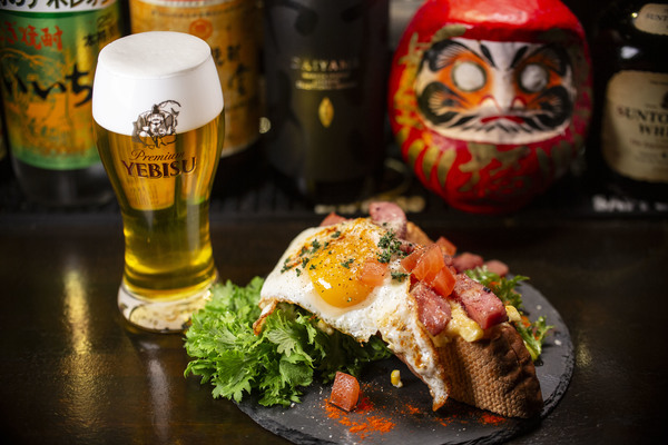 平日や深夜でも大人気の恵比寿2丁目の地元の皆さんのオアシス「大衆喫茶つばき」。店主のじゅんさんのフワッとした人柄がそうさせるんでしょうね。今回のヱビスビールに合う逸品グランプリで提供される限定醸造の「ヱビス澄深し」に合わせた料理は男の子大好きメニュー。トーストの上にはこれでもかと言わんばかりのわんぱくな具材。ガブっと食べてグイっと飲み干す。