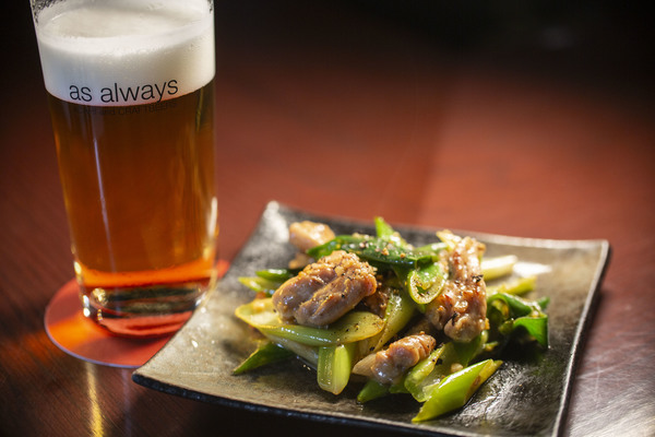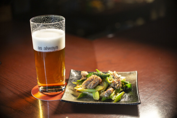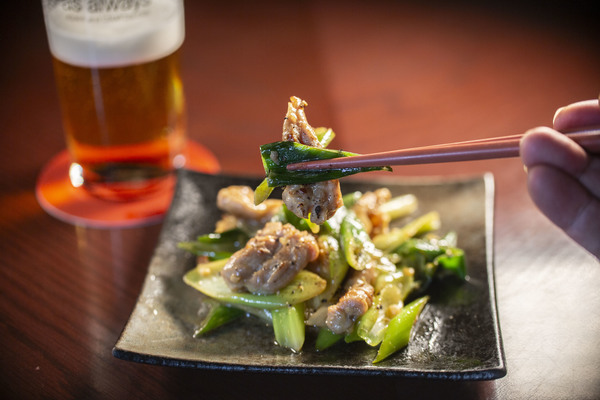 今回の「ヱビス澄深し」は、ヱビスにしては軽く爽やかな香りと味に感じました。しかし余韻にはヱビスがちゃんといます。なので強い味にはせず、せせりのコクとねぎの香りを出しながら塩炒めにしてみました。そしてにんにくとゆず胡椒で、余韻のヱビスに負けないような軽いパンチを付けて、1杯と1品のバランスが取れるよう考えました。