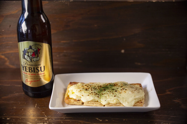 アホ→ajo(アホ)はスペイン語でにんにくを意味します。きつねの油揚げにニンニクとチーズを一緒に焼き上げた、ヱビスビールに合う逸品。決してアホなキツネではありませんよ(笑)