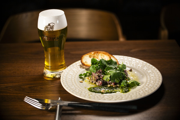 2024年ヱビスビールに合う逸品グランプリで最優秀賞を受賞した肉の専門ビストロ「肉ビストロHIGHTAIL」。シェフの児玉さんの繊細な料理は毎回逸品GPを周る方の心を鷲掴みにしているわけですが、今回のヱビスビールに合う逸品グランプリで提供される限定醸造「ヱビス澄深し」に合わせてきた逸品もかなり嗜好を凝らした料理。香りと香りの協奏です。