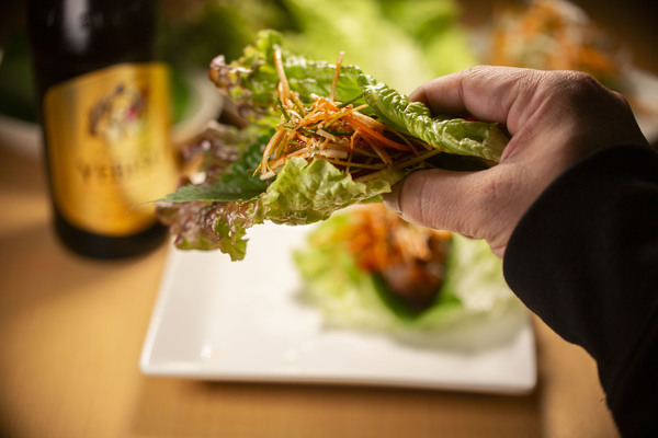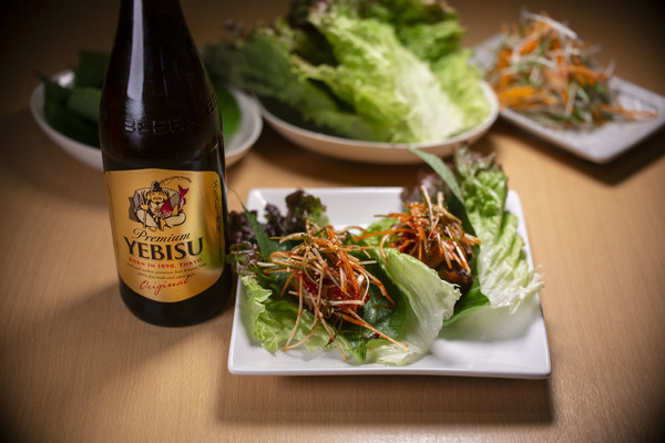 恵比寿名物と言っても過言ではない「カムジャタン」が超有名な老舗韓国料理店「KO-LA(コーラ)」さん。濃厚なあのスープでグツグツと煮えるジャガイモと肉。想像するだけで食べたくなる病みつきのカムジャタン。今回のヱビスビールに合う逸品グランプリの為に特別に考えられた料理は韓国ではポピュラーな豚煮「ポッサム」を角煮でアレンジし野菜で巻いた逸品。エゴマの葉の香りがさわやか~!