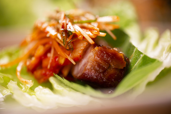豚の角煮をポッサムに合うように甘辛くほどよい歯応えに仕上げました。ピリ辛な味に仕上げた角煮は、ビールとの相性ばっちり。 サンチュ、シャキシャキの千切り野菜やキムチと一緒に包むと、こってりとさっぱりがちょうどよく合わさって、ついもう一杯飲みたくなる味です。いつものポッサムとは少し違う、ちょっと贅沢な一品。サッポロビールと一緒にぜひ楽しんでください。