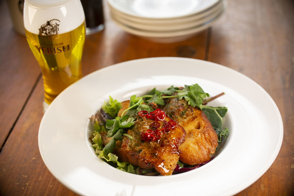 海老のプリプリ感は残しつつオイスターのすり身を合わせてふんわりとした仕上がりでレモングラスや香菜の香りが食用をそそります。自家製のスウィートチリソースをかけたらコクのあるヱビスピールにペストマッチ間違いなしです。
