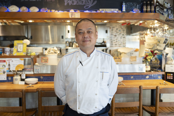 世界中・日本国内から新鮮な牡蠣を取り寄せオイスターバーとして既に16年の営業を続ける老舗オイスターバー「FISHHOUSE OYSTERBAR 恵比寿西口本店」。料理長の松下さんの「牡蠣」を使用した料理は絶品。今回ヱビスビールに合う逸品グランプリの為に特別に考案してくださった逸品がタイではポピュラーな「エビトースト」を牡蠣でアレンジ。自家製スイートソースに大注目!