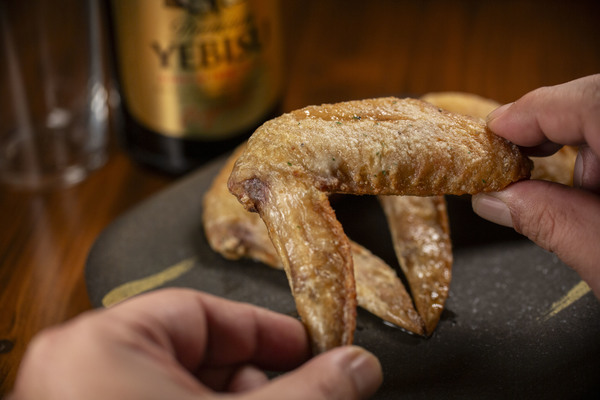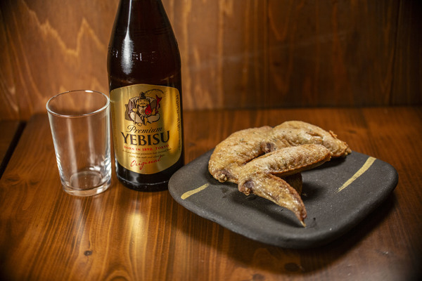 名古屋で人気予約必須の手羽先のお店「手羽先むつみ」が恵比寿神社の横にOPENして1年目。現在既に人気で満席状態の日も多い。今回はヱビスビールの為に作られたお店自慢の手羽先「戎味~ガーリックトリュフ味~」がニンニクの旨味とトリュフの香りがフワッと上品な手羽先。是非ヱビスビールと共に。