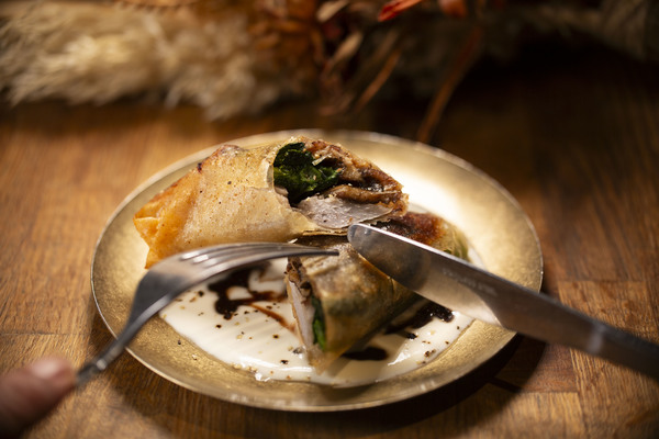 2022年ヱビスビールに合う逸品グランプリにて見事準グランプリに輝いた名店「tTure(ティーチュール)」。国内外のナチュールワインを取り扱い料理も絶品の人気店。今回の逸品GPの為に開発した料理は「煮穴子と里芋の春巻き」。しっかりと和のテイストも残しつつヱビスの特徴でもあるホップの香りとキレにも対応できる香ばしさと甘さの余韻を意識した素晴らしいペアリングです。
