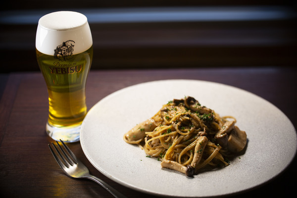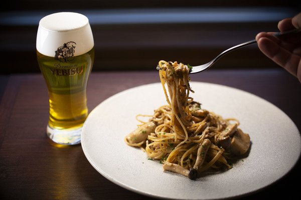 ホップの爽やかな香りが、キノコの芳醇な風味と濃厚なクリームソースを一口ごとにリフレッシュさせ、飽きの来ない美味しさとなります。