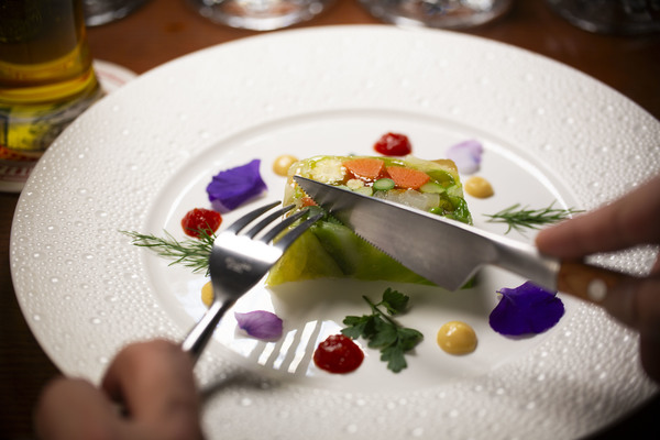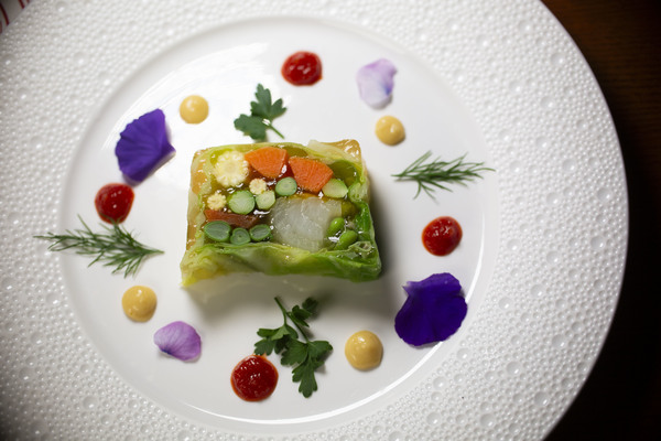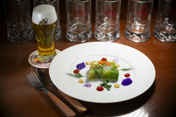 この料理を着想したキッカケは、先日の試飲会で『ヱビス クリエイティブブリュー澄深し』を試飲した際の衝撃的な印象でした。それは、ヱビスらしさを感じさせながらフルーティーでかつ春のような広がる華やかな香りと飲み終えた後の軽やかなコクでした。そこで色彩豊かな季節野菜を使用し見た目の彩豊かさを与えつつ、野菜のピューレを使用した自家製ソースやエイブルフラワーでさらに視覚的に「春らしさ」を表現してみました。様々な素材による食感と個性豊かな味わいを『ヱビス クリエイティブブリュー澄深し』とのペアリングにてご堪能いただけたら幸いです。