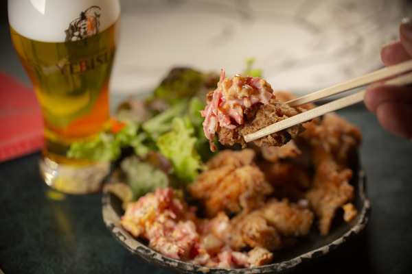 こんにちは。恵比寿ちゃんこ部屋です。毎年参加させて頂いている逸品グランプリですが、今回も「ビールに本気で合う一品」を考え、旗の台の老舗弁当屋〈さかえや〉直伝の名物唐揚げをオリジナルでご用意しました。大ぶりのもも肉を醤油ベースでしっかり下味をつけ、厚めの衣で二度揚げしたザクザク食感とジューシーさが自慢。さらに今回はさっぱり感とコクをプラスする特製“紅生姜タルタルソース”を添え、濃い味の唐揚げと紅生姜の爽やかな酸味がヱビスビールと相性抜群。ちゃんこ屋の温かい空気のなか、老舗×老舗の味を豪快に頬張ってください!お待ちしております!