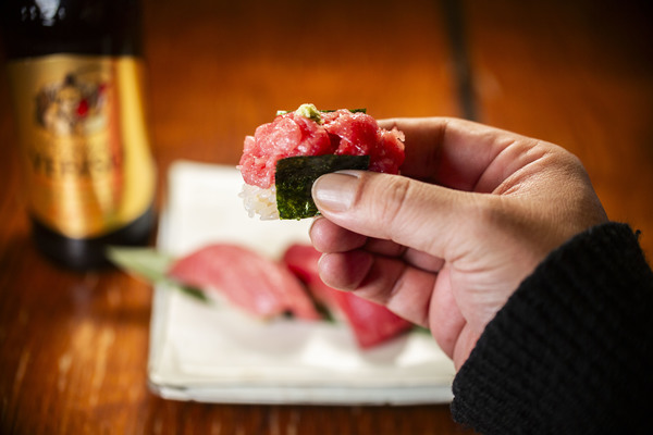 創業1966年。その日仕入れた最高の素材で組み立てる“おまかせコース”を中心に、寿司によく合う日本酒やワイン、酒の味わいを引き立てる肴を揃える寿司店です。目利きが厳選した旬の食材を用い、ネタの温度や提供の順番にまで心を配った一貫を、お客様一人ひとりに合わせて提供。長年培った丁寧な仕事により、素材本来の旨みを引き出す握りは世代を問わず親しまれています。今回の「サッポロ ヱビスビールに合う逸品グランプリ」では、まぐろ赤身・トロ・ネギトロ・ズケの四種の握りをご用意。芳醇なヱビスのコクと調和し、至福の余韻を生み出します。