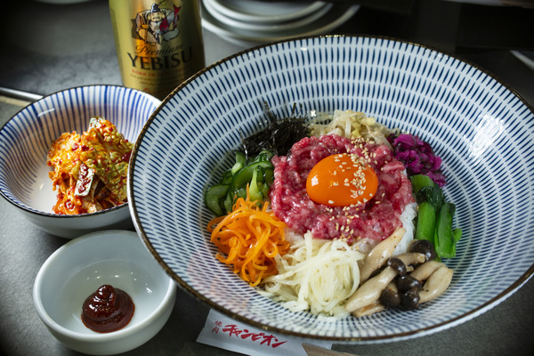 ついにレジェンド級のお店がヱビスビールに合う逸品グランプリ初参加!もう説明不要の人気店。恵比寿が誇る焼肉の名店「焼肉チャンピオン」です。今回はきっと需要殺到するであろう黒毛和牛の最高級ユッケを使用した「ビビンバ」。肉質は言わずものがな超上質で口の中でトロケル食感。しかもこの価格!