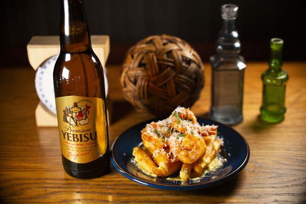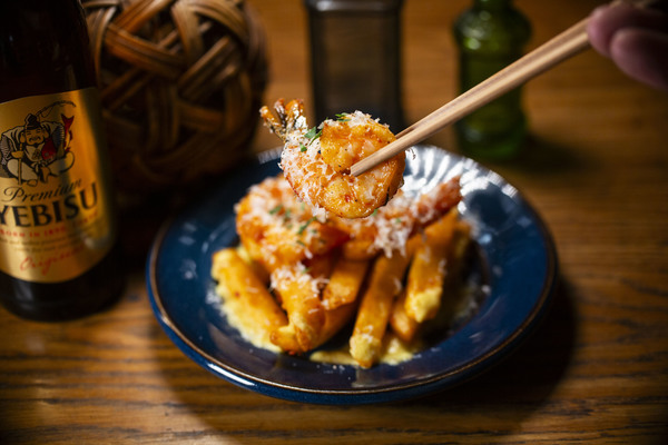 花椒の痺れと唐辛子の辛味が効いた麻辣ソースで絡め、アンチョビを加えることで塩気と深いコクが重なり、後引く旨さに仕上げています。辛さはしっかり感じつつも重くなりすぎず、エビの甘みとじゃがいもの旨みを引き立てるバランス。「アンチョビ×麻辣」で、ひとくちごとに食欲を刺激し鼻に抜ける花椒の香りがヱビスビールとの相性抜群!!