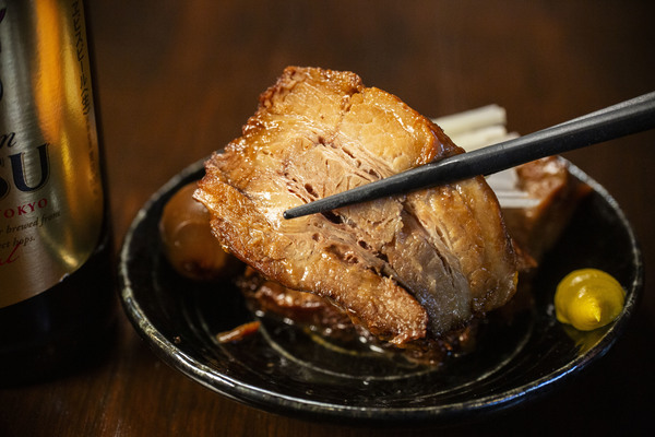 時間をかけて煮含めた角煮は、脂が重くならず、舌の上で静かにほどけていきます。口に入れた瞬間に広がる旨味、そして自然と欲しくなる次の一口。これは“食べるため”ではなく、“飲むため”に設計した角煮です。